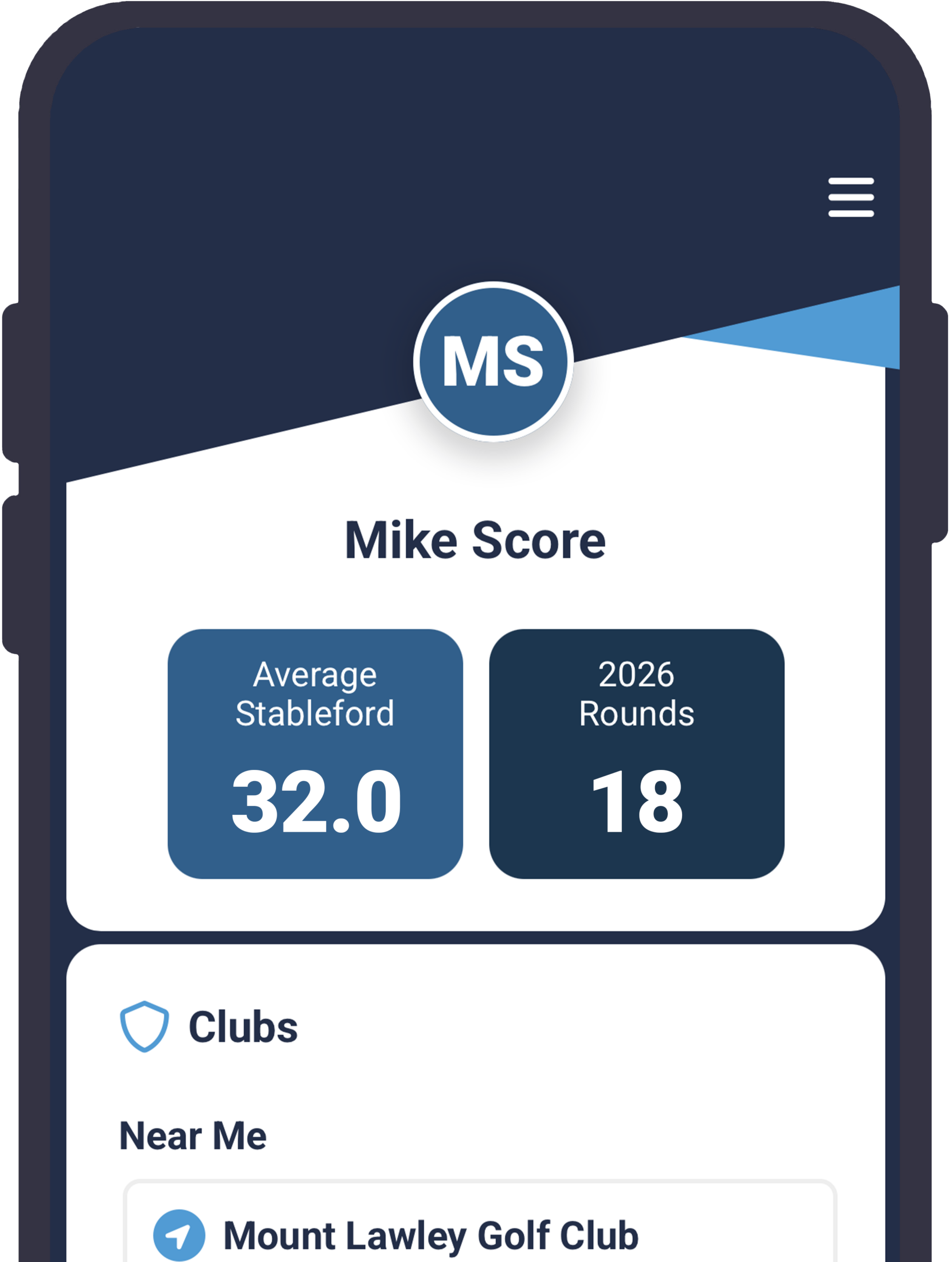 Personalised dashboard with favourite clubs, quick links to start rounds and customisable playing stats widgets.